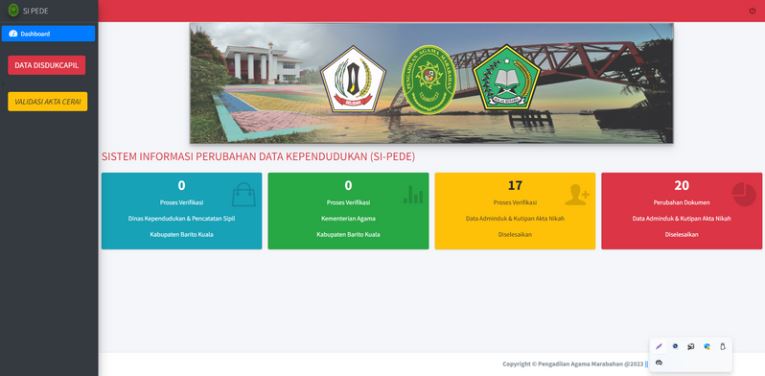 SI-PEDE atau Sistem Informasi Perubahan Data Kependudukan Inovasi ini menjadikan proses administrasi perubahan data kependudukan passca perceraian menjadi lebih efiesien, lebih hemat waktu, dan lebih mudah. Manfaat SI-PEDE adalah Masyarakat bisa langsung mendapatkan perubahan data kependudukan pasca perceraian berupa KTP dan Kartu Keluarga di kantor Pengadilan Agama Marabahan sekaligus mengambil Akta Cerai.