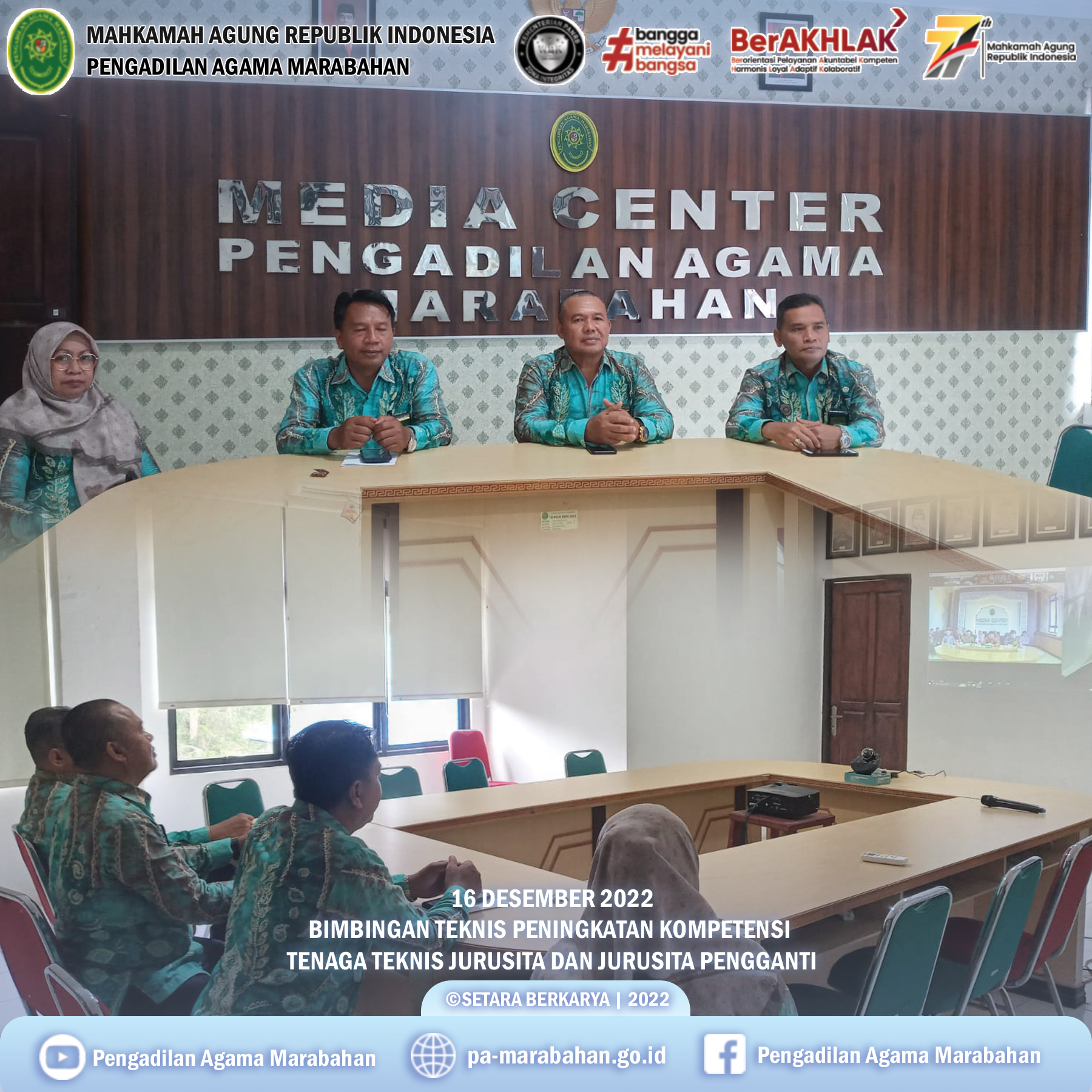 Slot - Jumat, 16 Desember 2022, bertempat di ruang Media Center Pengadilan Agama Marabahan, melalui aplikasi Zoom Meeting, Jurusita dan Jurusita Pengganti Pengadilan Agama Marabahan mengikuti secara daring Bimbingan Teknis Peningkatan Kompetensi Tenaga Teknis Jurusita dan Jurusita Pengganti yang diselenggarakan oleh Direktorat Jenderal Badan Peradilan Agama Mahkamah Agung.