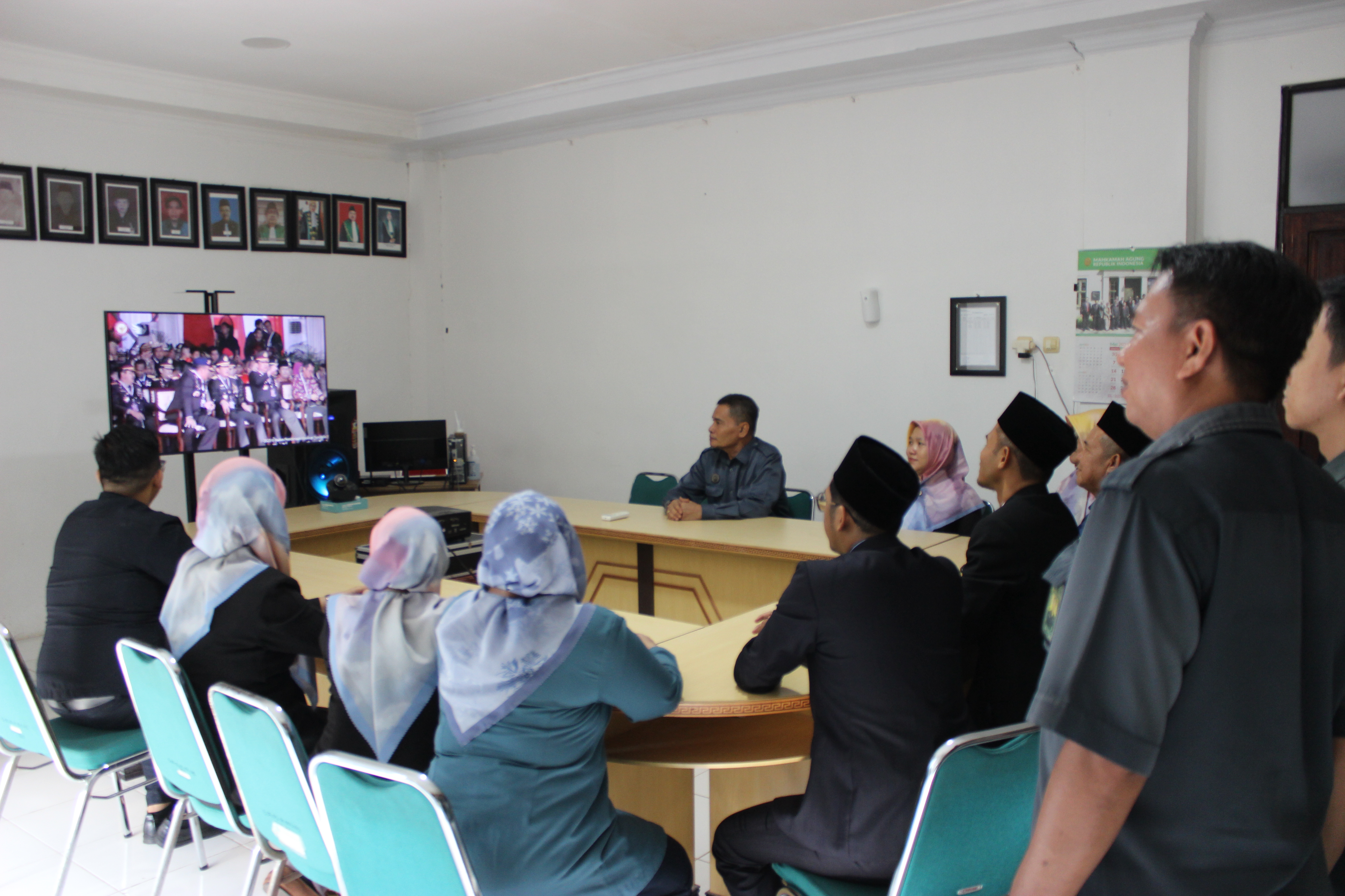 Setelah pelaksanaan upacara selesai. Ketua, Hakim, Panitera, Pejabat Fungsional, Pejabat Struktural, Staf, dan PPNPN Pengadilan Agama Marabahan mengikuti jalannya upacara secara terpusat di Lapangan Monumen Nasional, Medan Merdeka melalui siaran langsung kanal Youtube BPIP. (sahli)