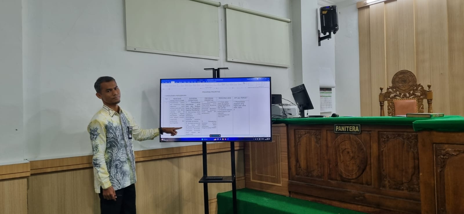 Acara dilanjutkan dengan pemberian materi dan evaluasi oleh Wakil Ketua Pengadilan Agama Marabahan sekaligus Ketua Tim Zona Integritas Pengadilan Agama Marabahan, Bapak Fattahurridlo Al-Ghany, S.H.I, M.S.I.