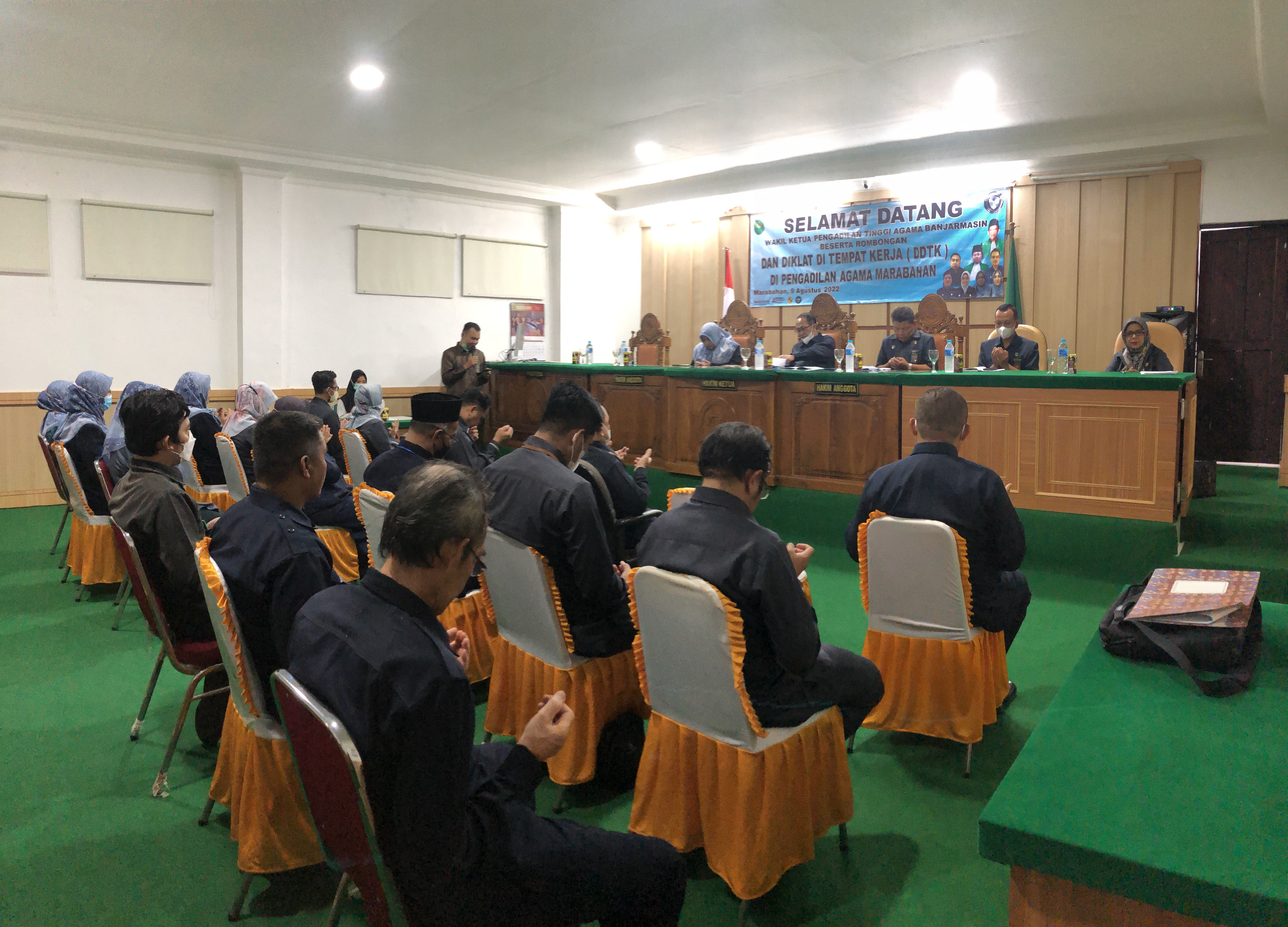 Kegiatan Pendidikan dan Pelatihan dibuka (Opening Meeting) oleh Wakil Ketua Pengadilan Tinggi Agama Banjarmasin sekaligus menyampaikan pengarahan tentang tujuan dan ruang lingkup kegiatan serta pembagian tugas Tim DDTK Pengadilan Tinggi Agama Banjarmasin