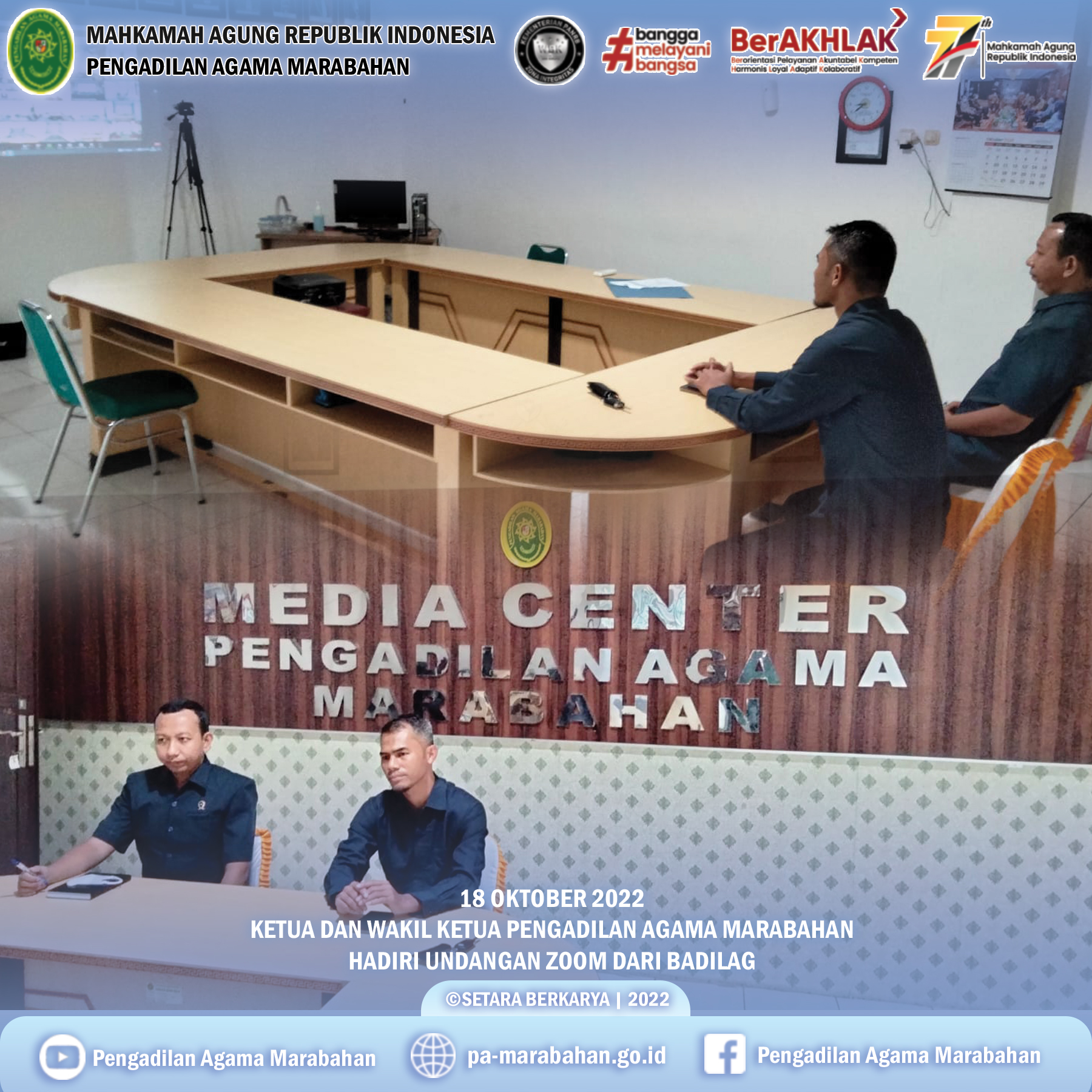 Selasa, 18 Oktober 2022 bertempat di Media Center Pengadilan Agama Marabahan, Bapak H. Dede Andi, S.H.I, M.H (Ketua Pengadilan Agama Marabahan) dan Hakim Pengadilan Agama Marabahan mengikuti Zoom Meeting dalam rangka Kunjungan Kerja Mahkamah Agung RI ke FCFCoA.